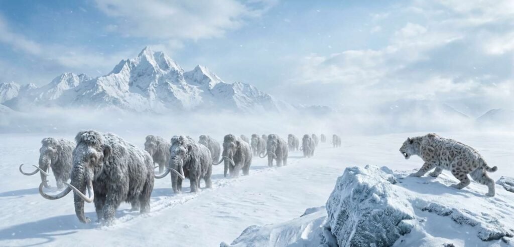 The Earth grew cold again. I watched the Ice Ages come and go, carving the Great Lakes and the jagged Alps. These freezing shifts forced life to adapt or perish. I walked alongside Woolly Mammoths and Saber-toothed Cats.